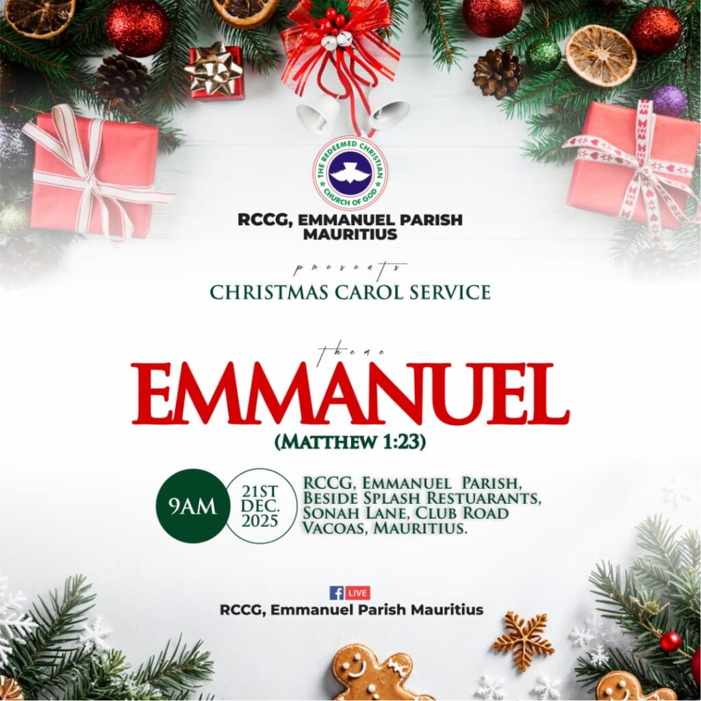 HOLYNET invites you to an impactful experience this coming Sunday service December 21st 2025 at the RCCG Emmanuel Parish Mauritius. This is a service you do not want to miss as it promises to cut a divine glory re-direction into your life once again like biblical time, but now in Mauritius.